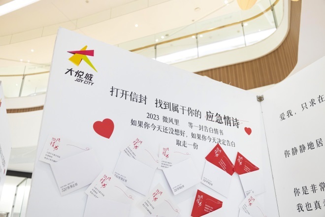 為迎接520情人節(jié),5月15日—21日期間,杭州大悅城推出特別企劃活動(dòng)——情書(shū)派送活動(dòng),會(huì)員當(dāng)日只要任意消費(fèi)即可領(lǐng)取應(yīng)急情詩(shī)1封,520當(dāng)天還有應(yīng)急玫瑰派送環(huán)節(jié),參與活動(dòng)即可領(lǐng)取玫瑰一支。