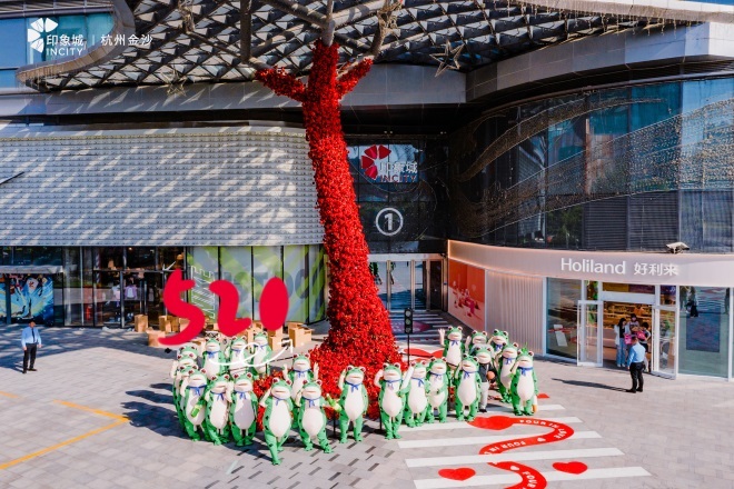 四周年慶展現(xiàn)“巨型愛(ài)心與玫瑰瀑布”隨愛(ài)而起,降落在金沙印象,1號(hào)門(mén)&2號(hào)門(mén)愛(ài)心斑馬線+愛(ài)心紅綠燈,一整個(gè)氛圍拉滿。與楊梅紅聯(lián)合打造“TO MY LOVE—IN象·遇見(jiàn)愛(ài)”主題畫(huà)展,以愛(ài)之名,溫暖新生;天空一聲巨響,蛙蛙閃亮出場(chǎng),30只青蛙散落在金沙印象各個(gè)角落,邀請(qǐng)消費(fèi)者來(lái)尋覓它們的蹤跡。