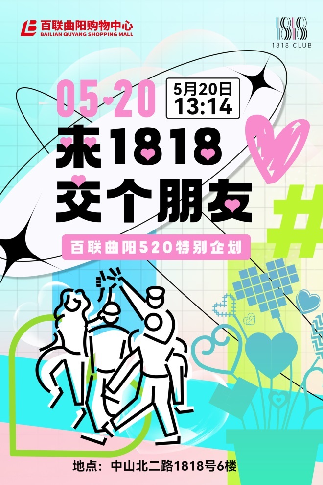 5月20日,上海交通廣播FM105.7歡樂(lè)晚高峰的熱門(mén)欄目《1818交個(gè)朋友吧—520特輯》登陸百聯(lián)曲陽(yáng)購(gòu)物中心,恰逢百聯(lián)曲陽(yáng)6樓鄰空間升級(jí)更新,“百聯(lián)曲陽(yáng)1818俱樂(lè)部”于520當(dāng)日揭開(kāi)神秘面紗。