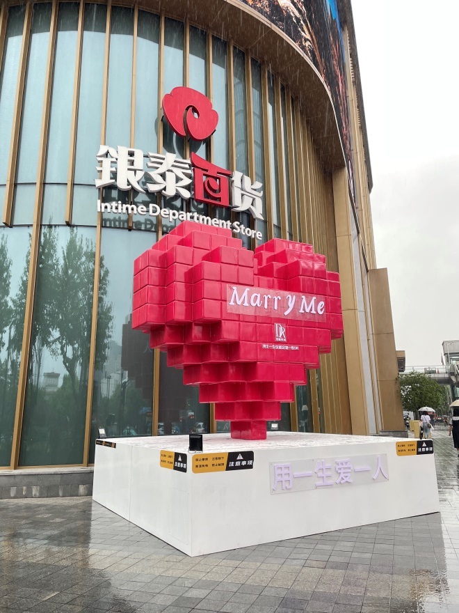 龍湖杭州金沙天街聯(lián)動(dòng)4大品牌開(kāi)啟杭城告白計(jì)劃,DR求婚季·勇敢說(shuō)出愛(ài)打造巨型愛(ài)心互動(dòng)裝置,NO ONE ELSE BUT CHUU(YOU)愛(ài)心階梯、IDO愛(ài)情專(zhuān)車(chē)、Pit玫瑰莊園打造巨型玫瑰花束,解鎖滿屏浪漫。
