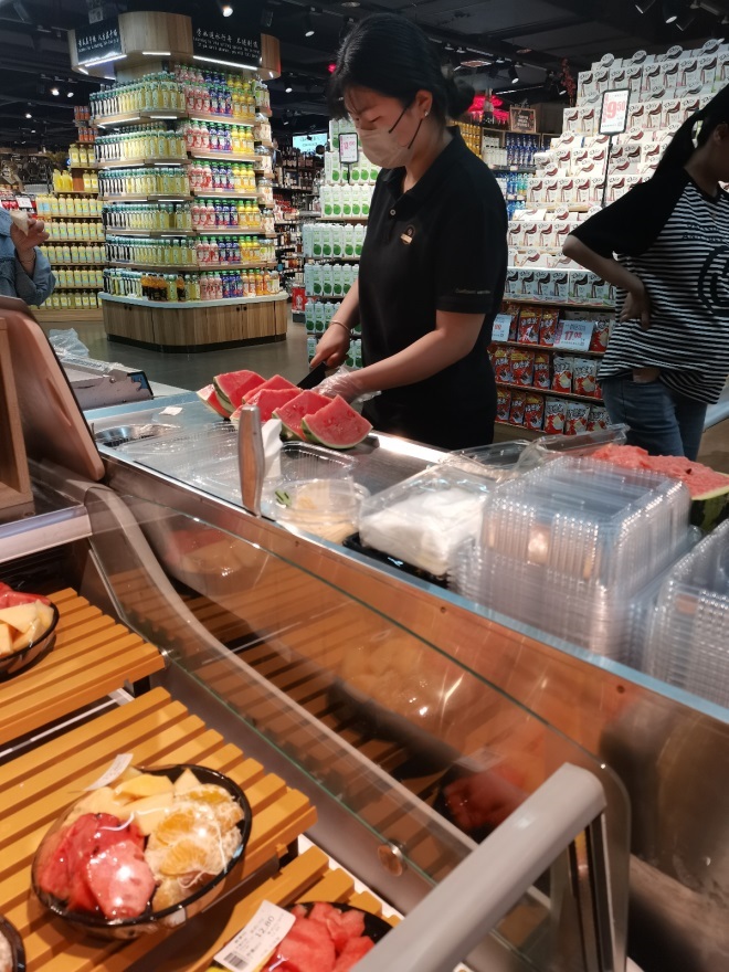 1、具有良好的個(gè)人形象以及個(gè)人素養(yǎng),專業(yè)技能突出,有一套拿手的果切技術(shù),為超市員工樹(shù)立了良好形象并起到了很好的帶頭作用;