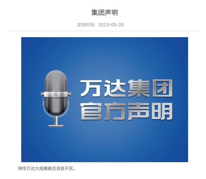 萬(wàn)達(dá)集團(tuán)聲明:網(wǎng)傳萬(wàn)達(dá)大規(guī)模裁員消息不實(shí)