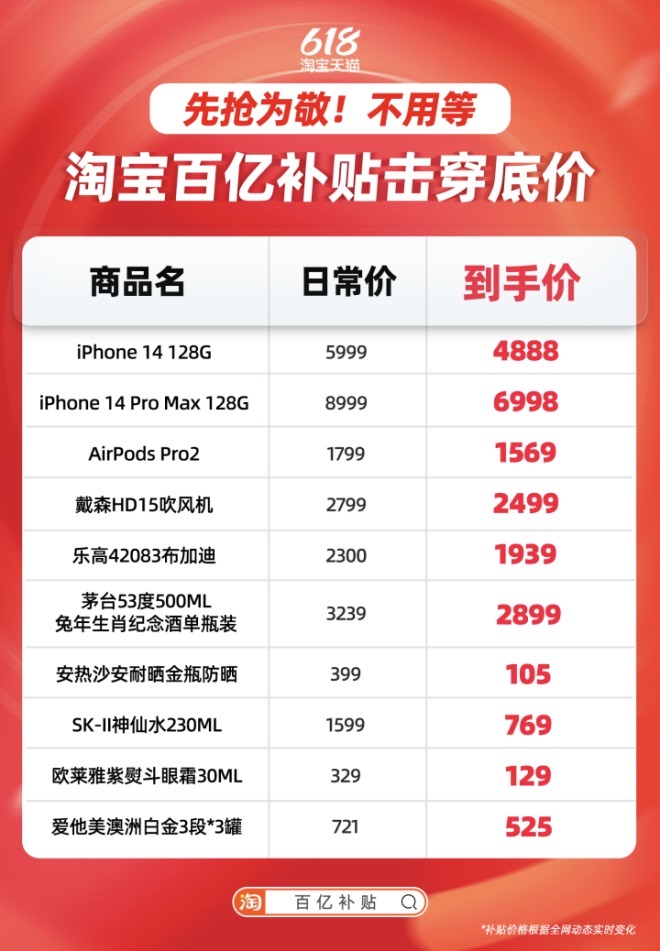 淘寶百億補貼發(fā)起618“擊穿底價”行動:iPhone14低至4888