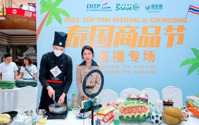 除了持續(xù)挖掘全球優(yōu)質(zhì)生鮮/活鮮產(chǎn)區(qū),永輝也圍繞進(jìn)口生鮮產(chǎn)品組織了多場優(yōu)質(zhì)主題活動(dòng)。如近期永輝就聯(lián)合-泰王國駐成都總領(lǐng)事館商務(wù)處、鑫榮懋果業(yè)在重慶舉辦泰國“2023年泰國商品節(jié)”,通過直播帶貨、線上互動(dòng)等方式,為消費(fèi)者深度介紹了泰國榴蓮、山竹、龍眼、椰青及飲料等多種優(yōu)質(zhì)特色商品。
