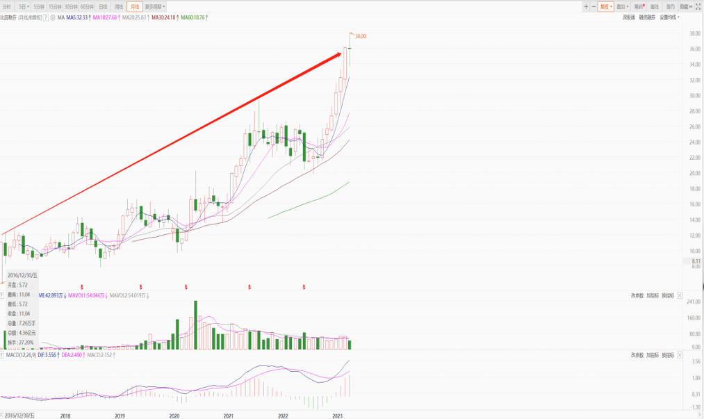 比音勒芬自2016年底上市以來(lái),(前復(fù)權(quán))股價(jià)從不到6元/股一路飆升至當(dāng)前的約36元/股,6年間翻了6倍。