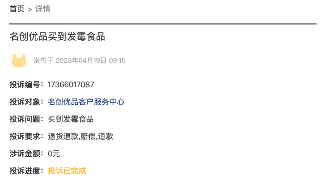 值得一提的是,在眾多投訴量中,名創(chuàng)優(yōu)品的“已回復(fù)”占比超99%,“已完成”占比93%,可以看出,名創(chuàng)優(yōu)品對(duì)網(wǎng)絡(luò)輿情還是相當(dāng)重視的,能夠及時(shí)關(guān)注網(wǎng)友的投訴并解決。但是在總投訴量上來(lái)看,數(shù)量上還是相當(dāng)較高的。同樣是在黑貓投訴平臺(tái),無(wú)印良品的投訴量不到800條,酷樂(lè)潮玩的投訴量300多條,都遠(yuǎn)低于名創(chuàng)優(yōu)品。