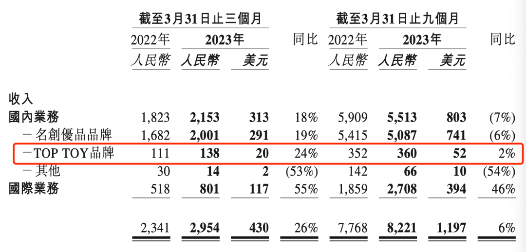 單看本季度,財(cái)報(bào)顯示,TOP TOY門(mén)店平均數(shù)量同比增加28.7%,門(mén)店平均單店收入同比減少3.7%,因此單店平均收入下降不僅體現(xiàn)在名創(chuàng)優(yōu)品雜貨門(mén)店類(lèi)型上,連TOP TOY也不能幸免。另外,本季度TOP TOY門(mén)店的收入同比得到24%的增長(zhǎng),不過(guò),從截至3月31日止九個(gè)月來(lái)看,TOP TOY門(mén)店的收入僅同比增長(zhǎng)2%。