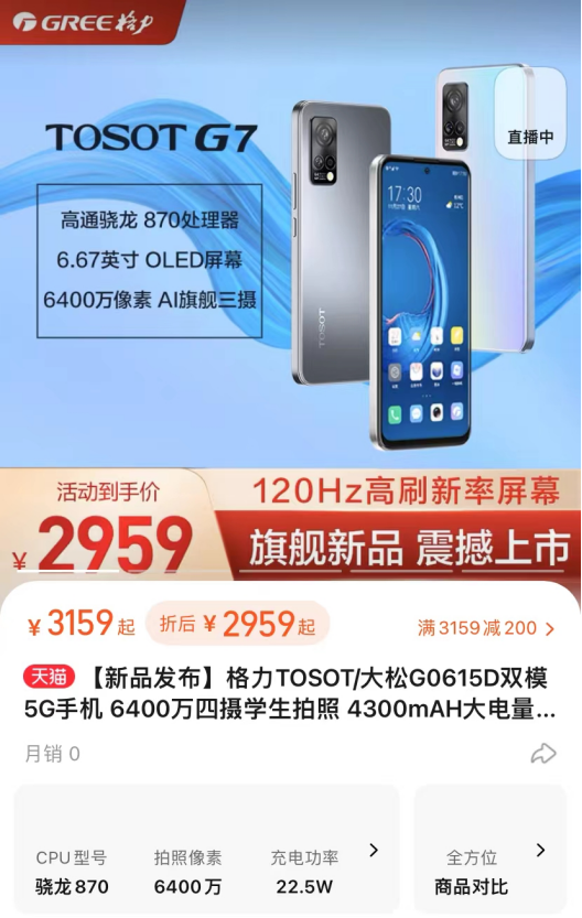 對此,格力公開回應稱,格力手機研發(fā)持續(xù)進行中,TOSOT G7是格力第六代手機,且與格力+智慧家居結合,歡迎進入“格力董明珠店”選購體驗。