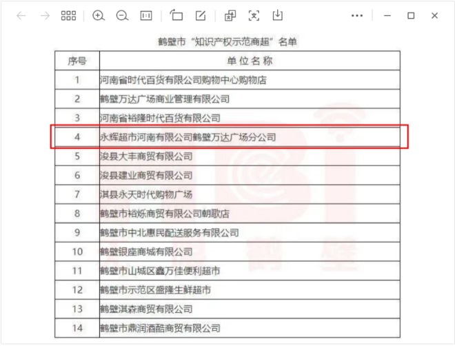 永輝超市鶴壁萬(wàn)達(dá)廣場(chǎng)店獲評(píng)“知識(shí)產(chǎn)權(quán)示范商超”