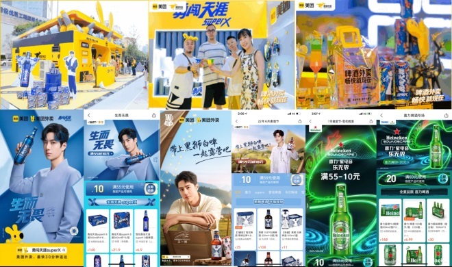 深度結(jié)合美團(tuán)外賣、生鮮、門票等相關(guān)業(yè)務(wù)關(guān)聯(lián)場景,探索更多玩法; 2023年,華潤雪花啤酒將聯(lián)合美團(tuán)閃購打造《一起露營吧》、王者榮耀電競賽、喜力®星電音等營銷活動,品牌從年輕人的興趣出發(fā),通過代言人、游戲贊助、節(jié)目植入等方式加強(qiáng)與Z時(shí)代人群年輕人的溝通。