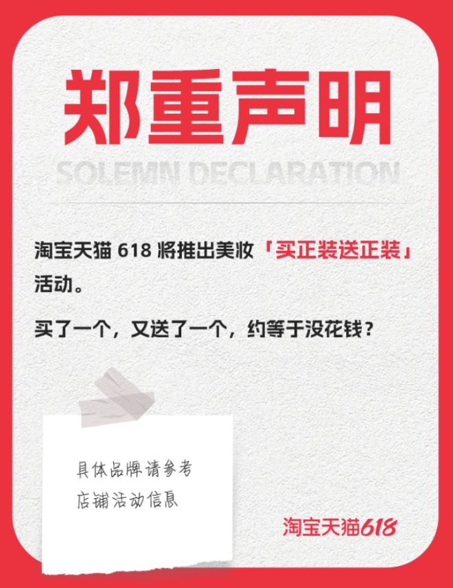 原來,隨著各大美妝品牌陸續(xù)在天貓官方旗艦店預(yù)熱618的活動,眼尖的網(wǎng)友發(fā)現(xiàn),今年天貓618美妝的力度有點大,除了直降、前N件折扣等活動外,不少品牌都推出了“買正裝送正裝”的優(yōu)惠。