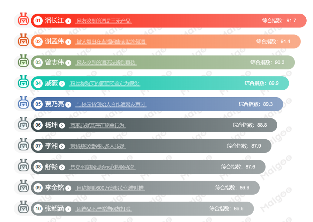 明星帶貨指數(shù) 來(lái)源:Maigoo