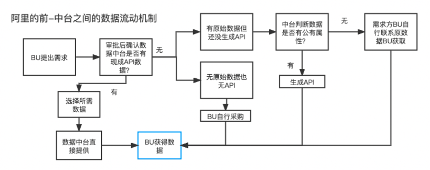 2. 中臺(tái)的任務(wù)清晰,比如給數(shù)據(jù)進(jìn)行脫敏清洗、貼標(biāo)簽;以API形式直接提供給BU,調(diào)用過(guò)程中內(nèi)部有特殊的結(jié)算方式;