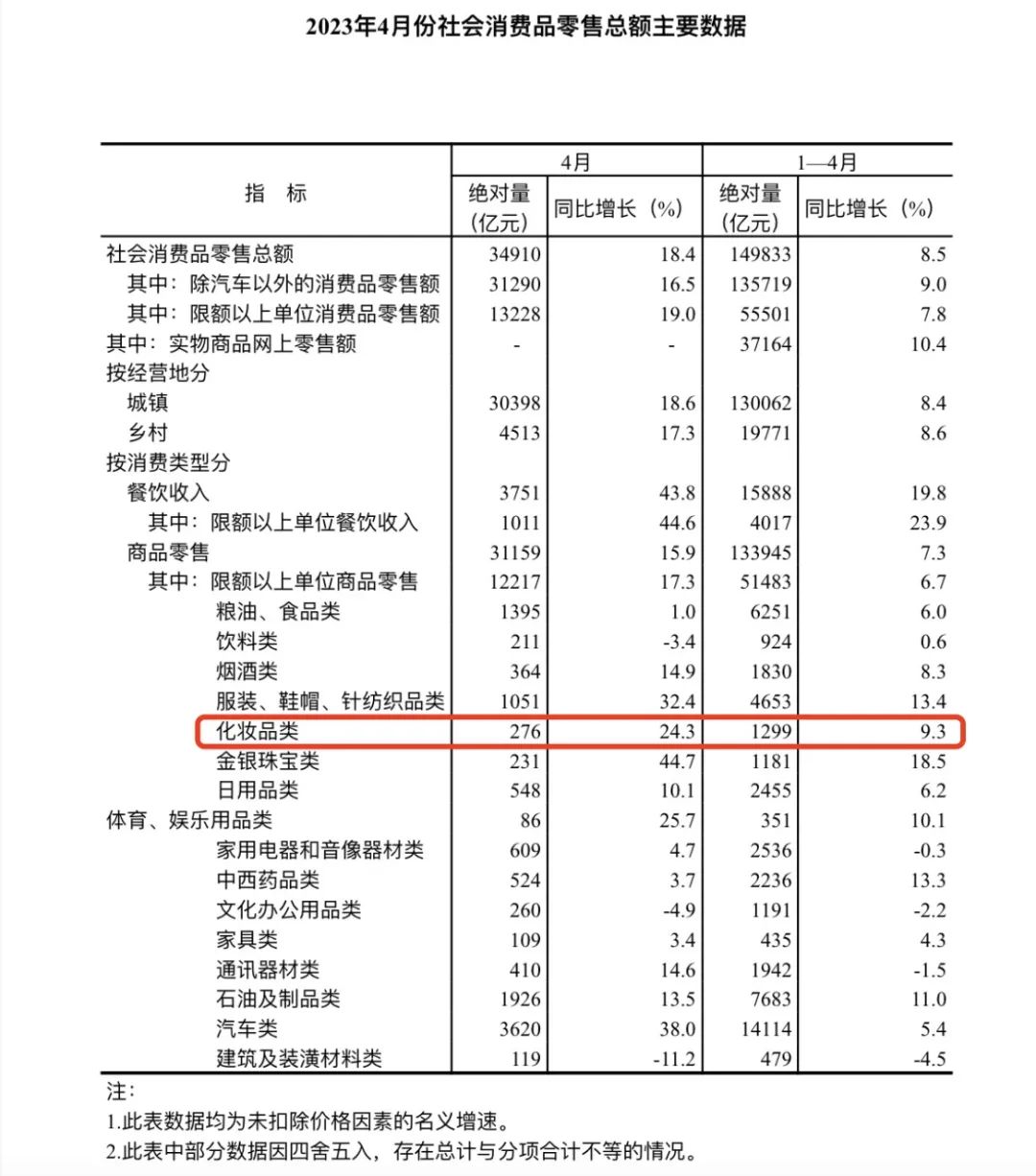 盡管消費者口罩已經摘下,從今年前4個月的社會零售消費品總額來看,化妝品類目有9.3%的明顯增長,但完美日記似乎并沒吃到這一波“市場反彈”紅利。