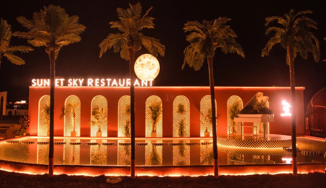 而這種大場景的設(shè)計,是落日與天空餐廳區(qū)別于其他城市休閑餐廳的壁壘所在。