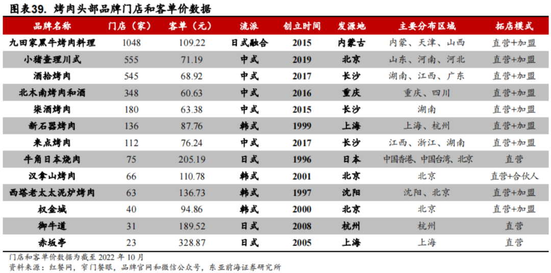 在烤肉門店排名前十的品牌中,有6家的客單價還不到100元。