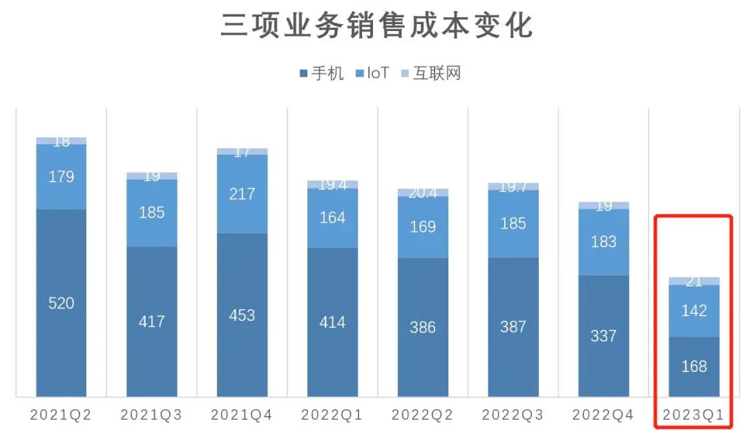 小米三項(xiàng)業(yè)務(wù)的銷售成本在2023年有大幅度下調(diào) 36氪制圖