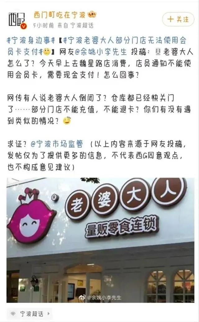 5月24日上午,一條關(guān)于“老婆大人倒閉了,不能用會(huì)員卡”的消息,迅速在各大社交平臺(tái)發(fā)酵。