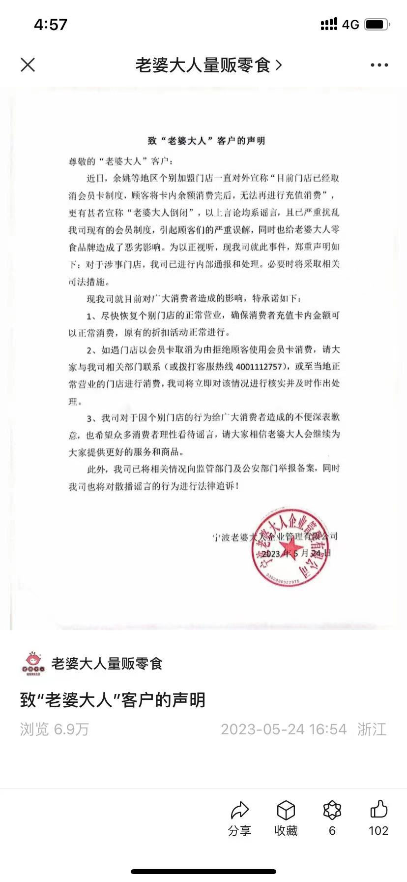 隨后,老婆大人總部發(fā)布公告稱,這次風(fēng)波是寧波余姚個(gè)別加盟店釋放謠言所致。