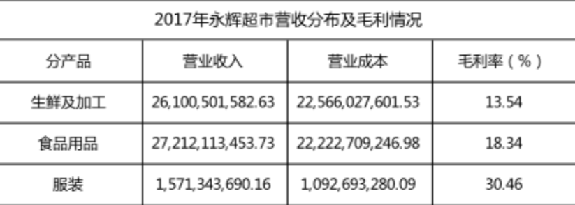 2017年永輝超市營收分布及毛利情況 制表:乾行