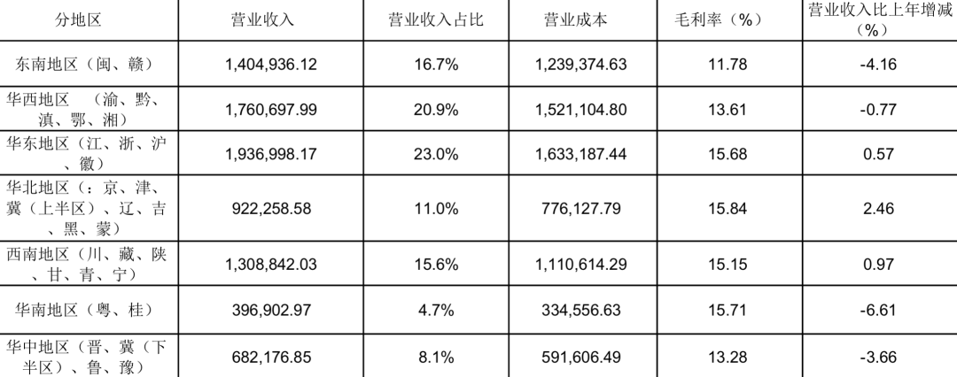 2022年永輝超市營收區(qū)域分布及毛利率水平 制表:乾行