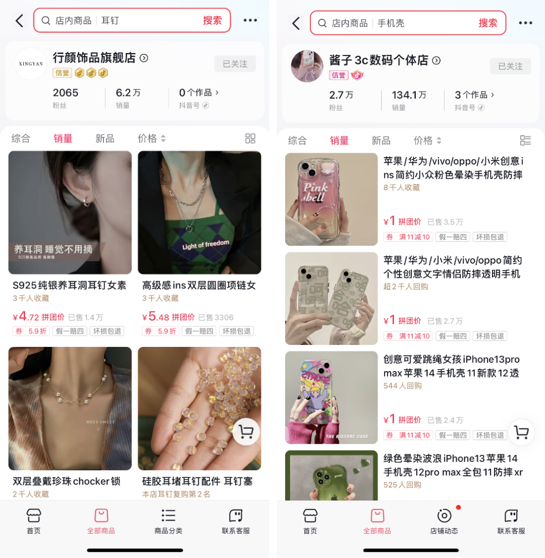 梁一告訴《窄播》,從去年開始就有一些商家專門在抖音做店鋪矩陣,上線足夠多的鏈接獲得商城曝光,這類商家此前就通過淘寶、拼多多店群或淘客模式賺錢,只不過現(xiàn)在這些平臺也成紅海了。李浩也表示,抖音電商的貨架給很多原來做拼多多的中小賣家提供了機(jī)會,因?yàn)樗麄円呀?jīng)習(xí)慣了這樣的算法邏輯和貨品需求。