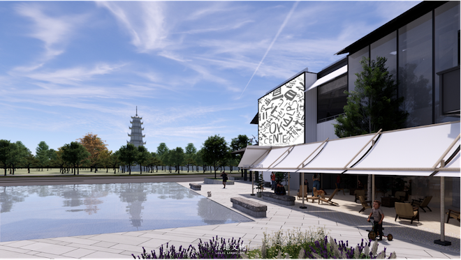 龍華會將充分尊重龍華塔的視野軸線,突破傳統(tǒng)的“盒子型”商業(yè)形態(tài),融入重檐坡頂、石材、瓦陶等,玻璃立面映現(xiàn)四季繁花。整體建筑以更開放的視野和低密度獨棟,為品牌展示和顧客體驗提供立體空間,將打造出一座民俗故事、文化碰撞、青年潮流、綠色生態(tài)兼容的城市理想街區(qū)。