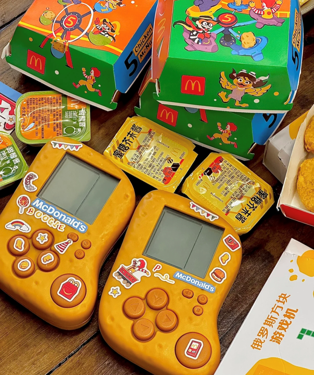 像是麥當勞在5月份就開始預(yù)熱,推出麥當勞雞塊游戲機,其實就是“俄羅斯方塊機”。