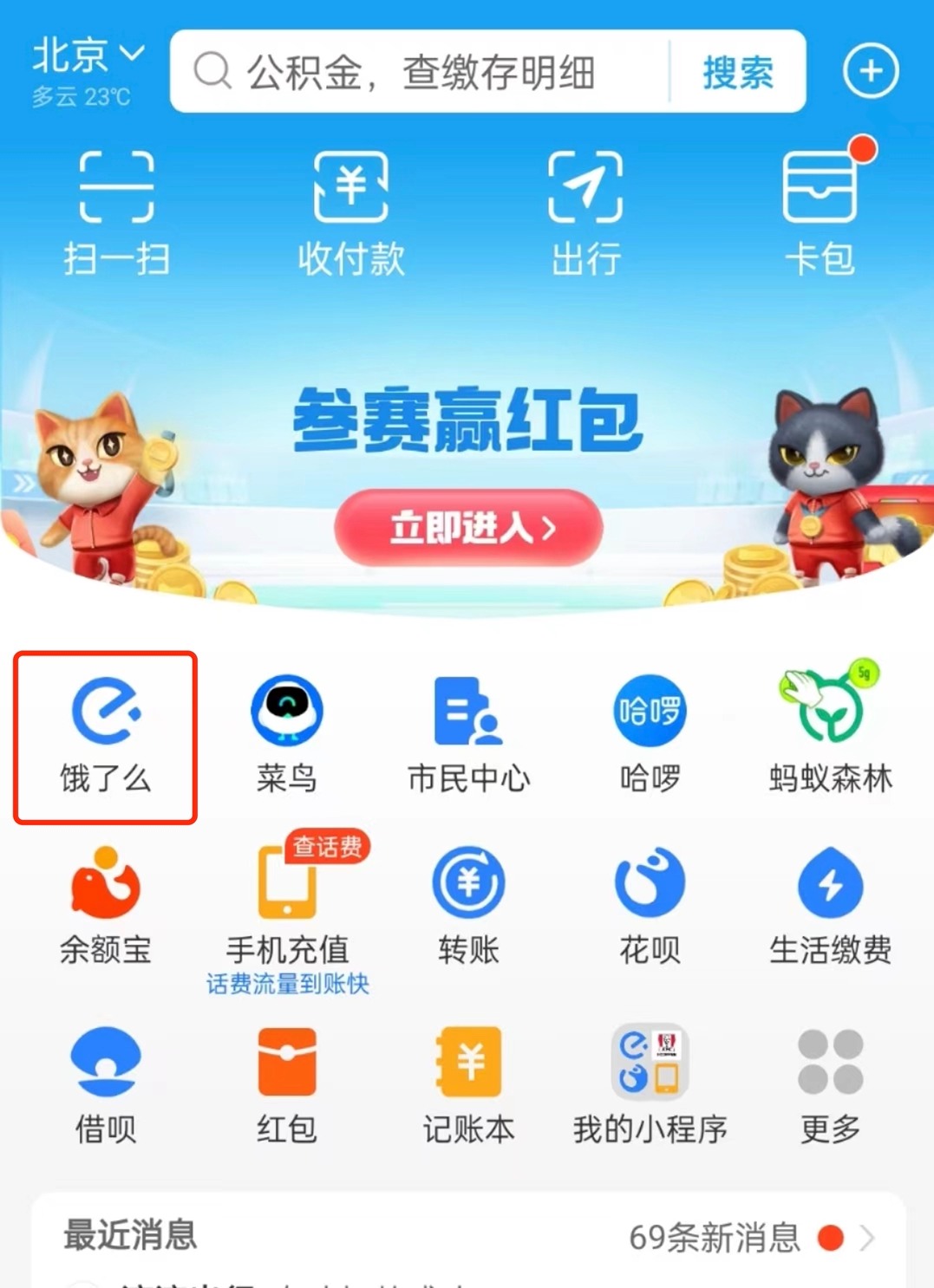 餓了么支付寶首頁(yè)入口 圖源支付寶