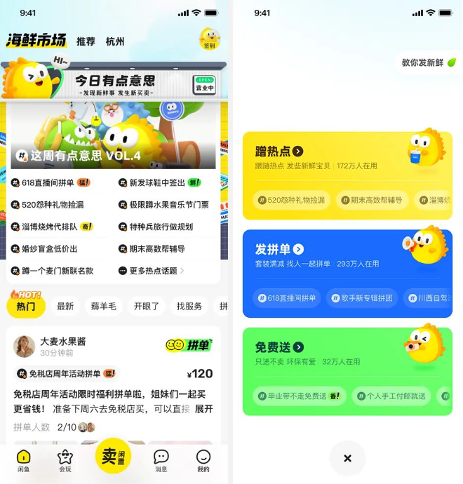 而在“閑魚 2023 產(chǎn)品升級發(fā)布會”上,閑魚對旗下的“會玩社區(qū)”、仲裁服務(wù)“小法庭”“信任產(chǎn)品體系”等功能進(jìn)行了全面升級,并新增“海鮮市場”頻道。另據(jù)閑魚方面透露,今年將投入 2 億資金完善平臺基礎(chǔ)設(shè)施,保障個人交易的公平和體驗。