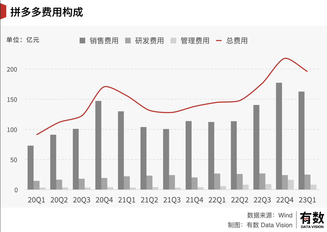 可拼多多并沒(méi)有增長(zhǎng)開(kāi)支來(lái)防御,拼多多本季銷(xiāo)售費(fèi)用為162.6億元,銷(xiāo)售費(fèi)用率43.2%,遠(yuǎn)低于市場(chǎng)預(yù)期的48.6%,這還是包含了國(guó)內(nèi)+Temu的全部費(fèi)用。
