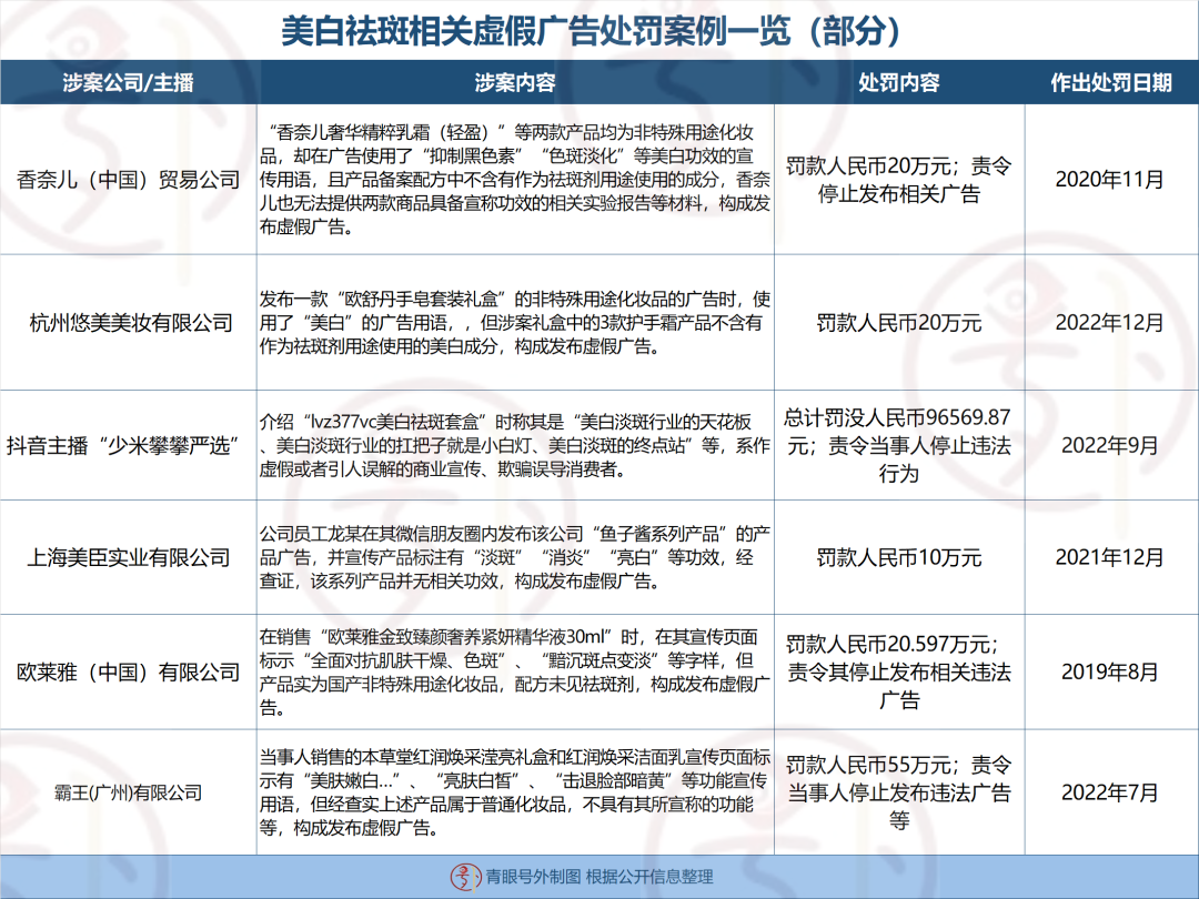 近年來,美白祛斑虛假廣告屢見不鮮,甚至國際大牌歐萊雅、香奈兒都曾因此翻車。