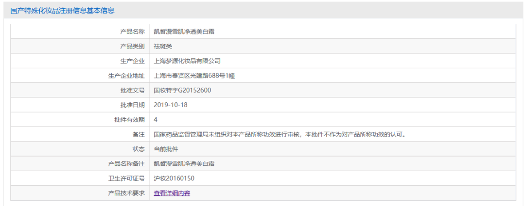 ▍截自國家藥品監(jiān)督管理局國產(chǎn)特殊化妝品注冊信息系統(tǒng)