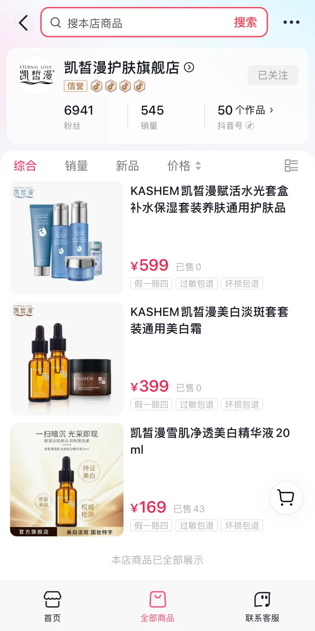 ▍截自“凱皙漫護(hù)膚旗艦店”抖音店鋪