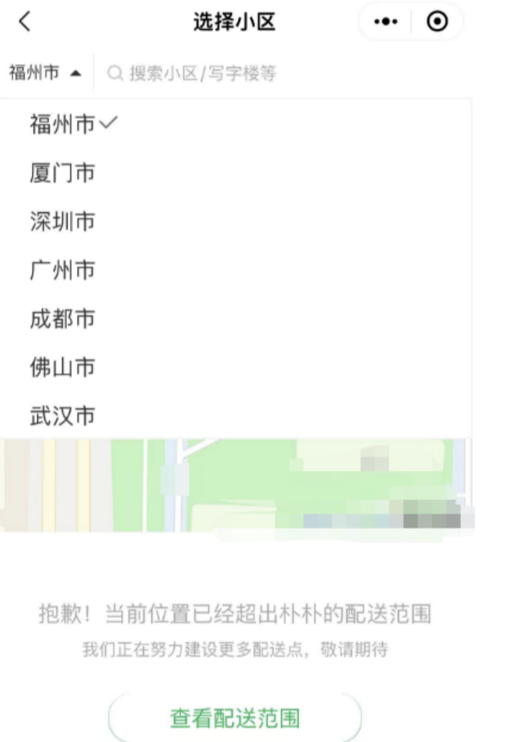 根據(jù)樸樸小程序最新定位范圍顯示,成立7年到目前為止僅覆蓋7座城市,且除成都和武漢之外都在閩、粵兩省。