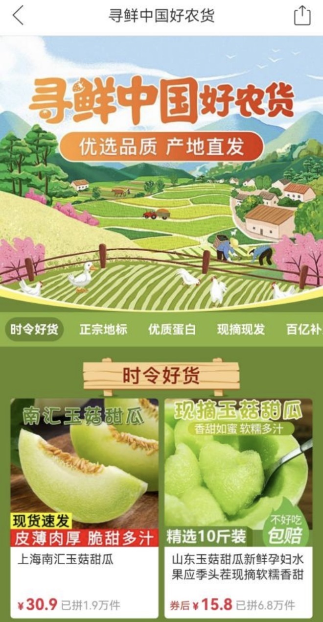 “我們長期致力于通過與產(chǎn)地對接,從源頭把控品質(zhì),并通過流量資源傾斜、百億補貼等舉措,助力優(yōu)質(zhì)農(nóng)產(chǎn)品提升市場競爭力、拓展新的消費群體!逼炊喽噢r(nóng)業(yè)項目負(fù)責(zé)人表示,拼多多已持續(xù)一年的“多多好農(nóng)貨”項目,在全國優(yōu)選最新鮮的當(dāng)季蔬果食材和品質(zhì)農(nóng)貨,通過嘗鮮直播、專區(qū)推介、地標(biāo)宣傳等方式,以“農(nóng)地云拼”實現(xiàn)“產(chǎn)消直連”,精準(zhǔn)滿足近9億消費者的消費分層需求!捌脚_努力通過多多好農(nóng)貨項目,提升包括玉菇甜瓜在內(nèi)的多種農(nóng)產(chǎn)品的品牌價值與效益!