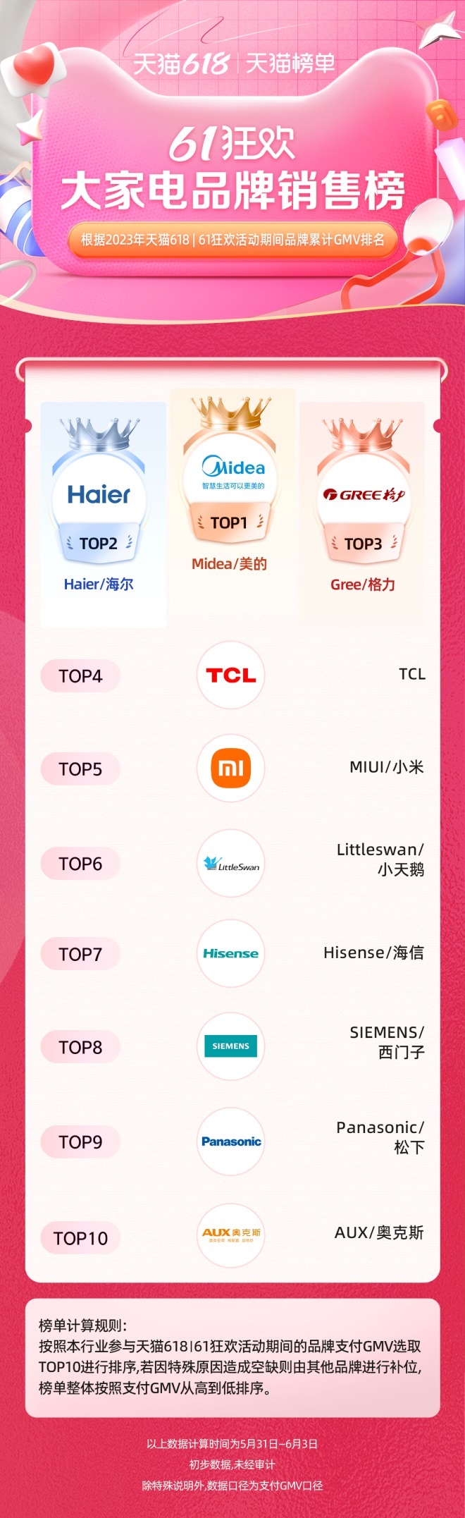 2023天貓618“開(kāi)門(mén)紅”品牌成交排行榜出爐