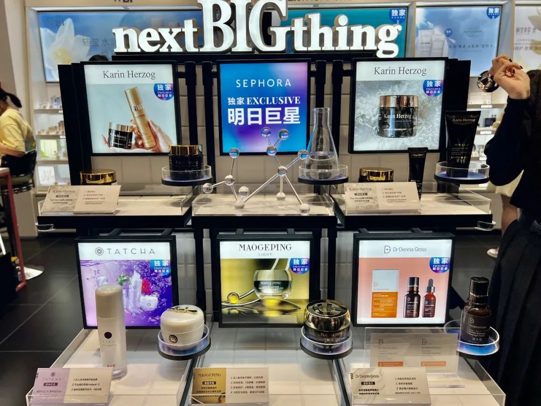 除了這幾個(gè)全新品牌之外,消費(fèi)者還能在店內(nèi)找到許多在線下渠道不那么常見的品牌和產(chǎn)品,比如WEI蔚藍(lán)之美、CHA LING茶靈、蘭嘉絲汀、Karin Herzog、Dr Dennis Gross、毛戈平·光韻魚子醬面膜等等,這些品牌正在與絲芙蘭中國相輔相成,逐漸形成一個(gè)絲芙蘭自有的“美妝生態(tài)”圈子。