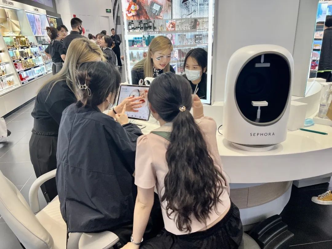 此外需要強(qiáng)調(diào)的是,在這個(gè)過程中,消費(fèi)者和門店的所謂“觸點(diǎn)”并沒有減少,從進(jìn)店、拿起產(chǎn)品、通過電子價(jià)簽瀏覽產(chǎn)品信息、使用AI服務(wù)(包括美妝、護(hù)膚和美發(fā)),到1對(duì)1咨詢、支付,再到后續(xù)的深度會(huì)員體驗(yàn),即使對(duì)一個(gè)第一次進(jìn)入絲芙蘭門店的消費(fèi)者來說,至少也能實(shí)現(xiàn)7次接觸。