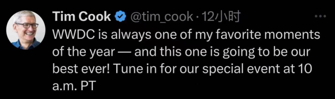 大會(huì)開始前的幾個(gè)小時(shí),蘋果CEO蒂姆·庫克(Tim Cook)就在自己的推特上發(fā)文稱,“WWDC一直是我在一年中最喜歡的時(shí)刻之一,而今年的WWDC則會(huì)是我們最棒的一次!”