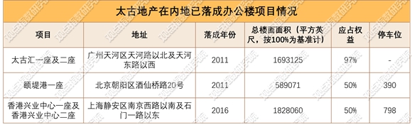 具體項(xiàng)目區(qū)位上,太古匯、頤堤港及香港興業(yè)中心項(xiàng)目分別位于廣州珠江新城商圈、北京望京商圈和上海南京西路商圈。