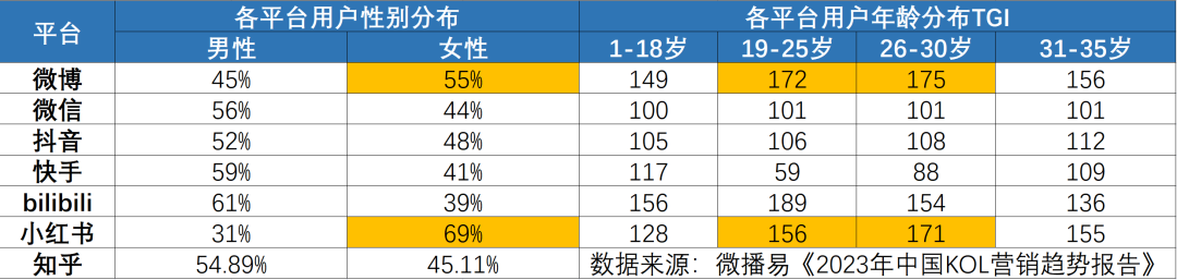 來自微播易的《2023年中國KOL營銷趨勢洞察報告》顯示,在最新的用戶性別分布上,微博和小紅書的女性用戶占比都在50%以上,小紅書相對更高,達到99%;同時在年齡分布指數(shù)上,微博和小紅書在26-35歲的人群差異上幾無分別,這是目前消費市場的主力。