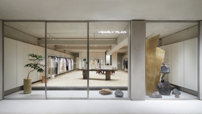 YEARLY PLAN首店充滿藝術氣息,自在生長的綠植、石器擺件、定制香味與歌單……無不展現(xiàn)了粗糙與細膩的對比、空間秩序的營造、柔和的視覺氛圍以及空間構件的隱藏與梳理,同時塑造出具備親和感與質感的空間感受,傳遞克制與簡約之美。