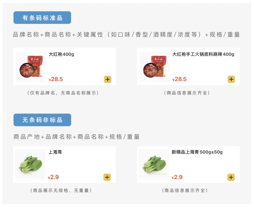 在商品名稱命名方面,根據平臺的規(guī)則,有條碼標準品和無條碼非標品的命名規(guī)則各有不同,如下圖所示: