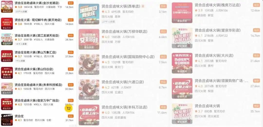 如今,想要在上述地區(qū)的大眾點評上看到賢合莊身影,只有在評論中看到的一句“曾經(jīng)是賢合莊”。