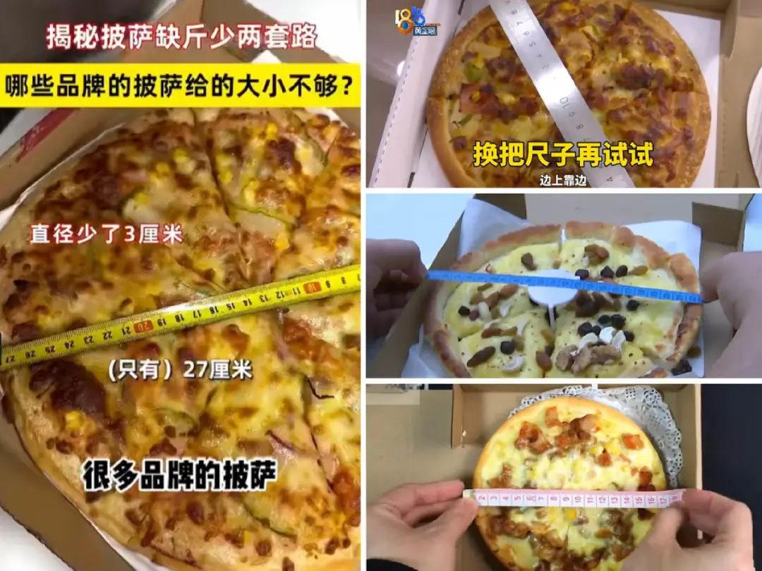 “吃了這么多年披薩,從來沒有懷疑過它的尺寸……”一位電視臺(tái)記者在節(jié)目中科普道,由于消費(fèi)者普遍對(duì)于披薩常用的計(jì)量單位——英寸不熟悉,所以對(duì)于到手的披薩尺寸沒有一個(gè)普遍的認(rèn)知!霸谶@里給大家科普一下,9英寸約等于22.86厘米,比一個(gè)籃球直徑小上一些……”