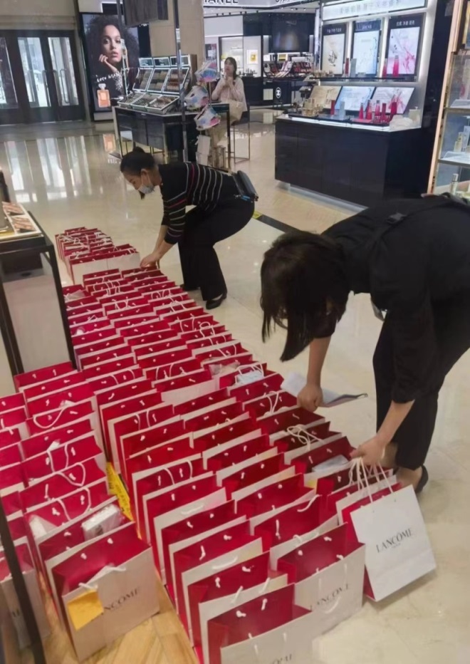 成都、長沙、西安、西寧、包頭等地重點區(qū)域門店積極組織618特色商品,調(diào)動全體員工充分利用朋友圈等自媒體渠道開展618商品分銷工作,推薦重點品牌菲仕樂、蘭蔻、雅詩蘭黛等618專屬商品活動,以及為消費者種草符合門店所在地區(qū)流行趨勢的商品亮點和促銷活動,通過員工社交網(wǎng)絡(luò)提高宣傳聲量,“以點帶面”提前鎖定成交的可能性,全力沖刺618銷售業(yè)績再攀高峰。