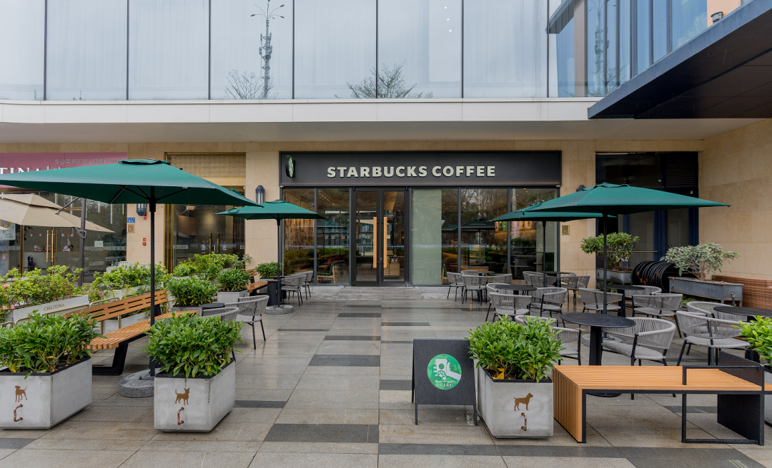 星巴克的寵物友好門店,選址一般靠近公園、公共綠地,利用環(huán)境優(yōu)勢為寵物創(chuàng)造更大的活動空間。門店還配備一系列寵物設施,如寵物座位、專屬杯槽、牽引繩掛鉤、便便專區(qū)和專屬垃圾桶。
