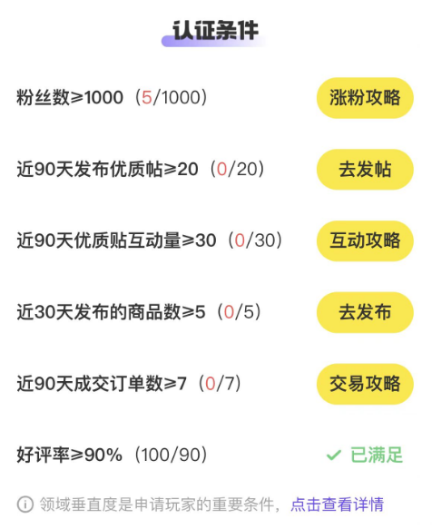 “閑魚玩家”認證條件 圖源:閑魚App