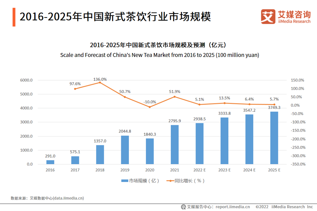 艾媒咨詢的數(shù)據(jù)也顯示,2016年至2019年,我國(guó)新茶飲迎來(lái)了爆發(fā)性增長(zhǎng),收入規(guī)模從291億元暴增至2044.8億元;但在2020年至2025年,新茶飲的增速明顯放緩,增速已經(jīng)回落至5.1%-13.5%,新茶飲的“黃金時(shí)代”暫告一段落。